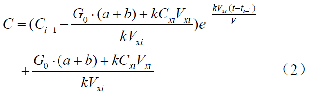 式中,G0為每人單位時間內的CO2散發(fā)量,m3/h ;Ci-1為ti-1 時刻室內CO2濃度;Cxi 為ti-1~ti時段內新風中CO2濃度;Vxi為ti-1~ti時段內的新風需求量,m3/h;k為混合系數,本文取0.9;a 為常態(tài)下的人流量;b 為非常態(tài)下增加的人流量。
