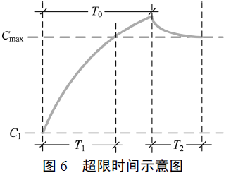 由上式可計算得到T2。因此實際超限時間為ΔT=T0-T1+T2,如圖6 所示。