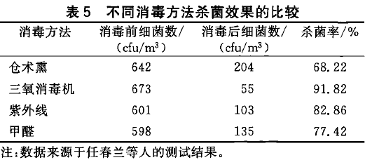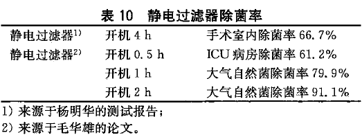 各種方法除菌、除塵的效果見表4~ 10[1]。