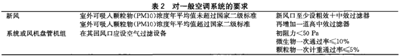 醫院潔凈手術室輔助用房主要指實驗室、化驗室、儀器室、治療室、處置室、消毒室等, 手術部可以另列。對空氣環境的要求主要是控制微粒和細菌,以及其他有關參數。潔凈手術室輔助用房可分為3類, 見表1。根據GB51039—2014《綜合醫院建筑設計規范》, 即使采用一般的空調系統也有相關規定,見表2。采用表2的做法,在霧霾天氣下保證室內環境沒有問題。