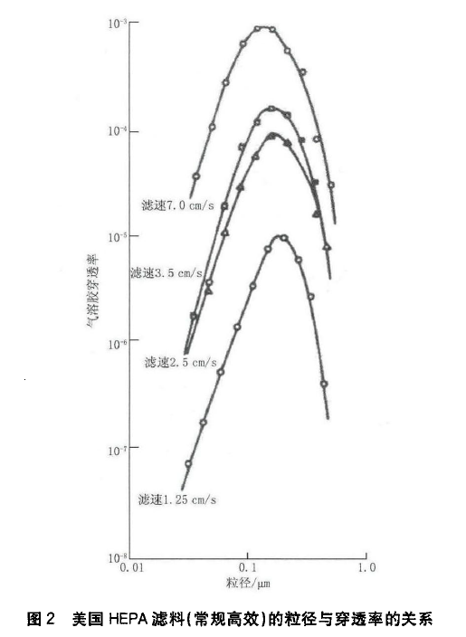 1) 除塵又除菌。細菌等價直徑從幾µm到10µm,而國家標準中效及以上過濾器是以>0.5µm為標準的。根據對口蹄疫病毒( 粒徑僅25~30nm)的實測[2], 攜帶該病毒的氣溶膠粒子65%~71% 直徑大于6µm,