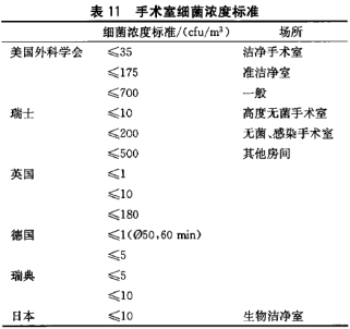 特別應指明的是,WHO標準中的細菌濃度是指動態細菌濃度,美、英、德、日(過去)、瑞士等國手術室菌濃標準也基于WHO標準, 皆指明為動態細菌濃度,見表11,一般是指離手術區30cm處的數據, 而俄、法、中等國的標準指明為靜態標準。我國《醫院消毒衛生標準》規定的150cfu/m3浮游菌就是靜態標準。