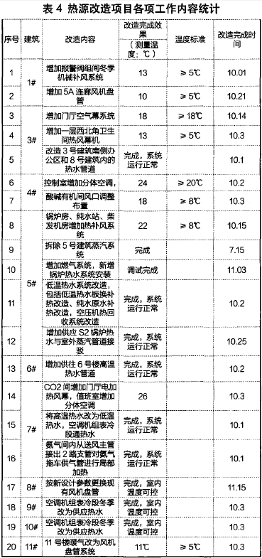 2.2.3項目總投資1065萬元,改造工程量大、機房設備正在運行,改造難度大、作業環境溫度高,項目包括拆除1500 m蒸汽管道,安裝熱水管道llOO m,鍋爐及配套熱水系統2套,更換8號綜合樓全部風機盤管等,通過強化現場管理、夜間趕工等措施,確保提前完成工廠供暖。
