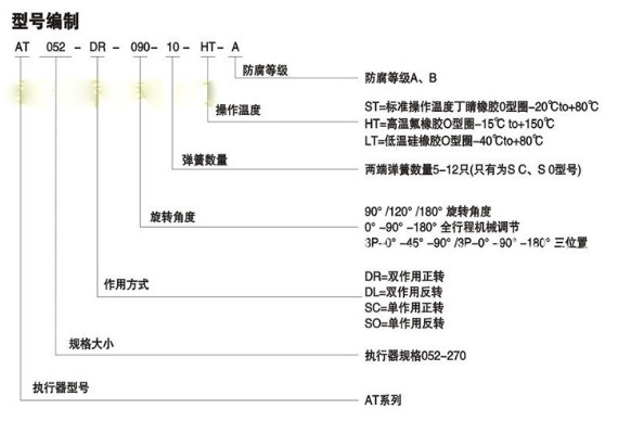 AT氣動執行器型號編制說明